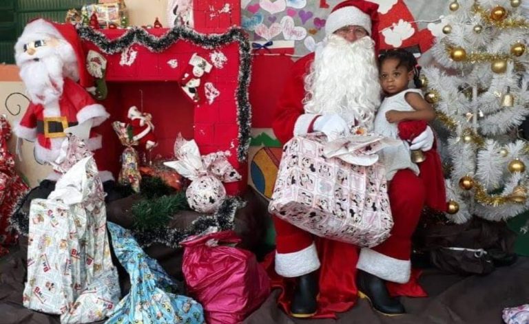 Doação de um “pacotinho de natal” contendo: uma roupa, um calcado e um brinquedos a todas as crianças assistidas pela entidade e crianças cadastradas de sua de sua comunidade entorno.